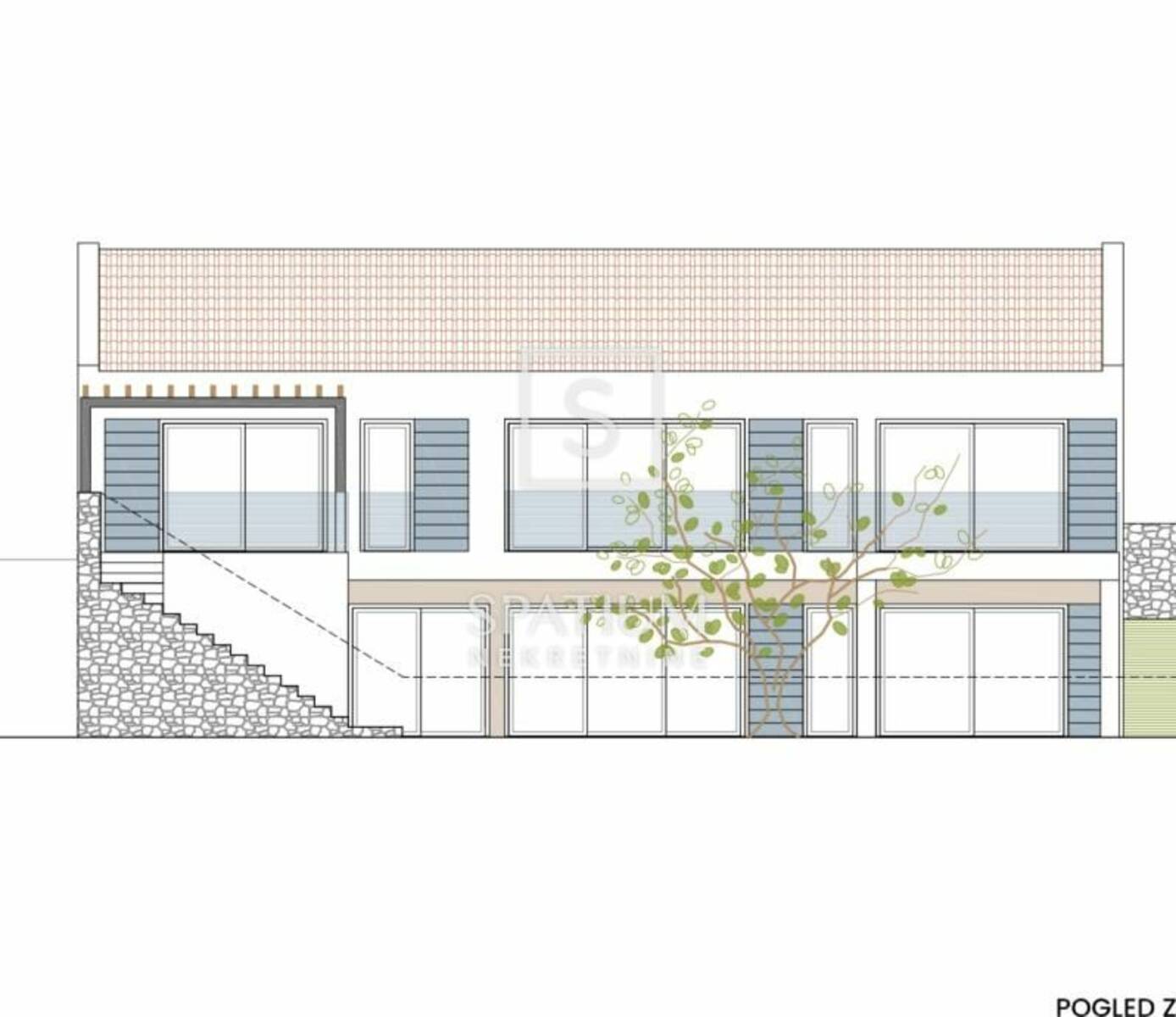 Idejni projekt za ovu nekretninu predviđa katnicu s tri spavaće sobe, četiri kupaone, te prostrani dnevni prostor koji uključuje kuhinju, blagovaonu i dnevni boravak,