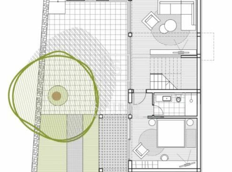 Unutar ograđene okućnice površine 191m2, predviđeni su dodatni sadržaji poput jacuzzija i saune, kao i prostor za druženje i parkirna mjesta.