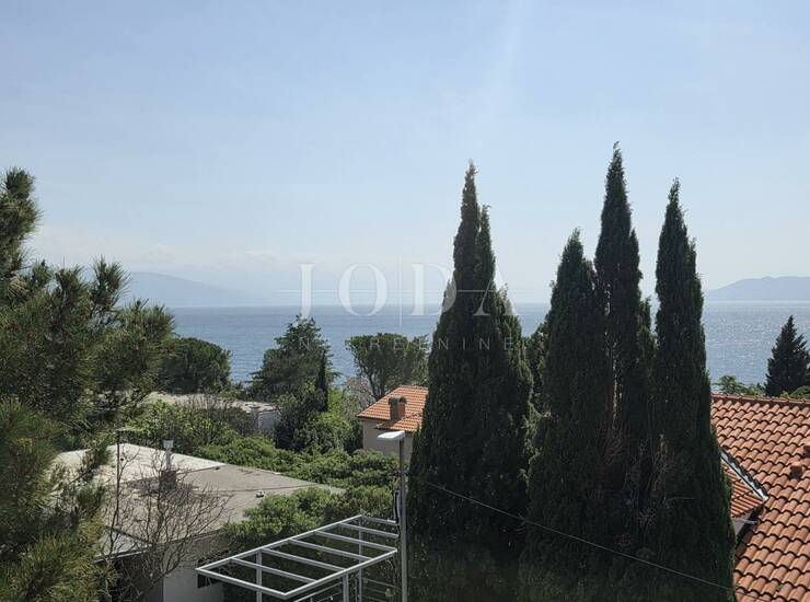 Vanjsko stubište vodi do dvoetažnog stana. Na prvoj etaži smještena je prostrana kuhinja s blagovaonicom, kupaonica, radna soba i spavaća soba, koje su povezane terasom s koje se pruža prekrasan pogled na more. Na drugoj etaži nalazi se spavaća soba s izlazom na terasu s očaravajućim pogledom na more, još jedna manja soba s balkonom te kupaonica.