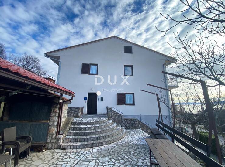 Kuća s 4 odvojena stana, okućnicom na kojoj se nalazi sjenica, garažom i panoramskim pogledom na more.