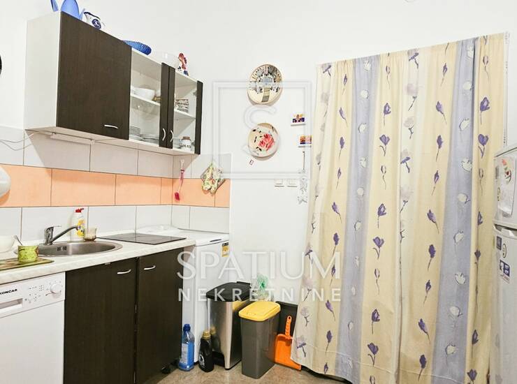 Površina apartmana 31 m2 odličnog je rasporeda, sastoji se od kuhinje s blagovaonom, dnevnog boravka, odvojene spavaće sobe i kupaone. Terasa ispred apartmana dostupna je na korištenje. Natkriveni ulaz štiti od vremenskih nepogoda. Novi klima uređaj omogućuje grijanje i hlađenje.
