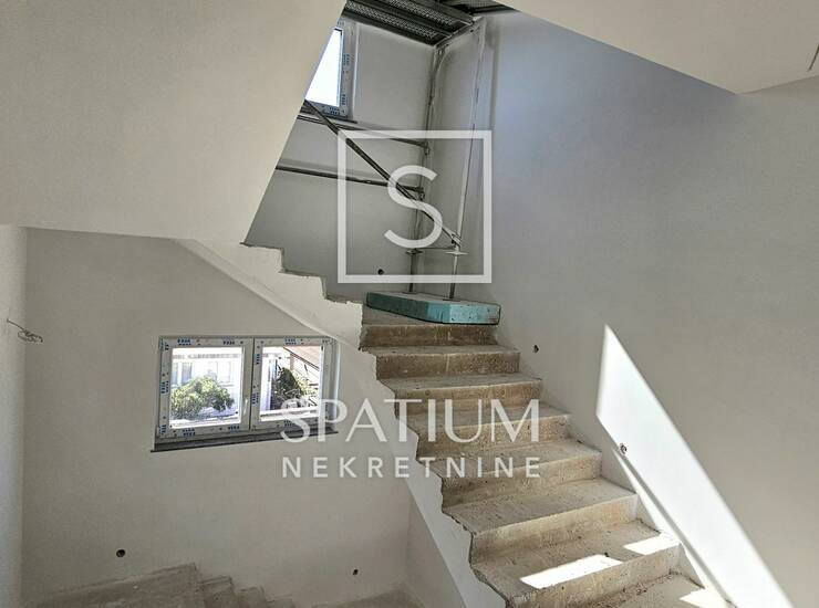 Zgrada se sastoji od ukupno šest stanova, a svakom pripada vlastito parkirno mjesto s mogućnošću instalacije priključka za električnu punionicu. Konstrukcija objekta izvedena je od armiranog betona, a zidovi su građeni izolacijskim blokom debljine 25 cm, uz dodatnu termoizolaciju fasade od 10 cm. Posebna pažnja posvećena je zvučnoj izolaciji između stanova te kvaliteti unutarnjih materijala, podne obloge čine troslojni parket velikih dimenzija (13 mm) i keramika formata 60 × 60 cm. Dnevne prostorije opremljene su podnim grijanjem, a zgrada je osigurana video nadzorom. Okućnica je potpuno uređena, s oblikovanim zelenim površinama i popločanim prilazima.