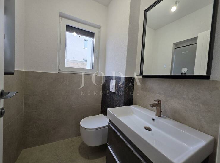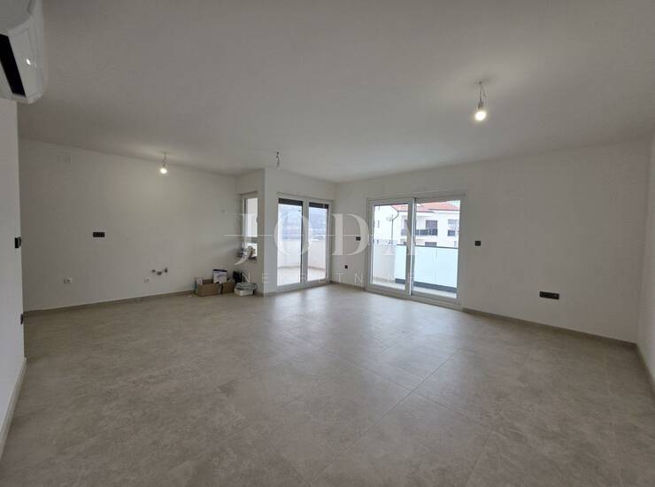 Novogradnja stan na prvom katu ukupne površine 97,26m2. Sastoji se od kuhinje, dnevnog boravka, ulaznog hodnika, tri spavaće sobe, dvije kupaone, wc-a, natkrivenog balkona i loggie. Zgrada se gradi kvalitetnim materijalima, a stan će biti opremljen klima uređajima u svim sobama, podnim grijanjem, ALU stolarijom i protuprovalnim vratima. Stanu pripada jedno parkrino mjesto uz mogućnost kupnje garaže. Poged na more. Odlična nekretnina kako za život tako i za turistički boravk.