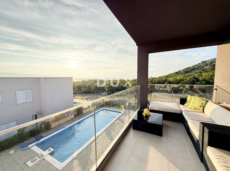 NOVI VINODOLSKI, OKOLICA - moderan stan 2. red do mora s bazenom, parkingom i z