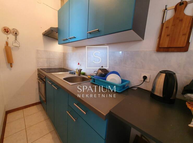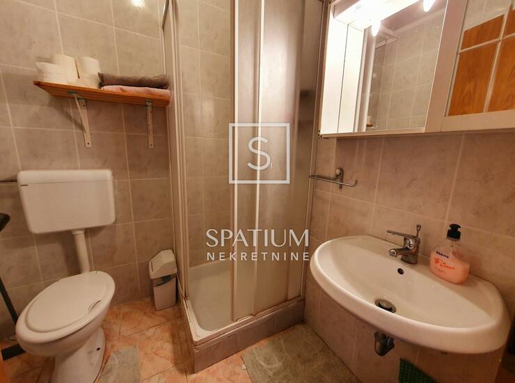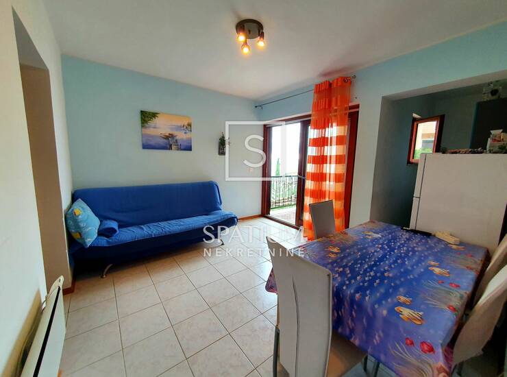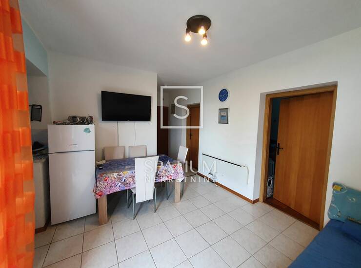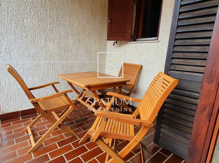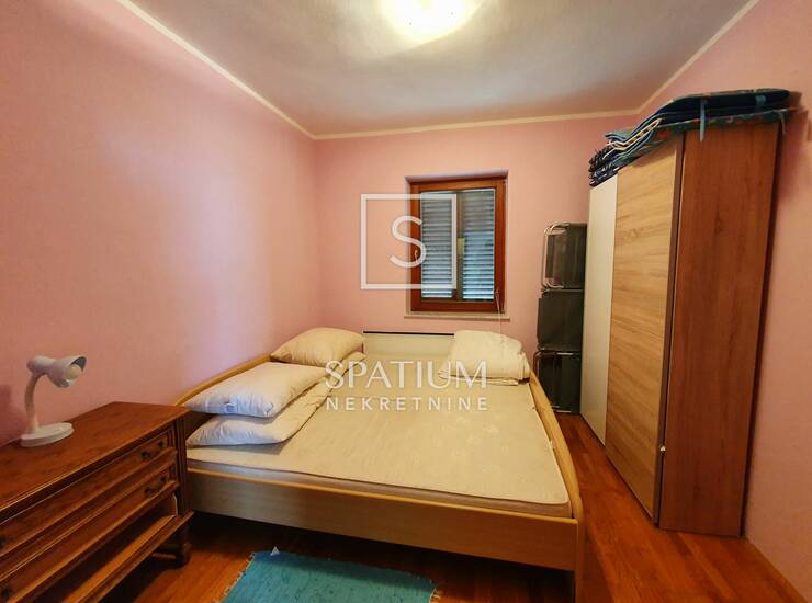Ulazni hodnik, kupaonica s toaletom, dvije spavaće sobe, kuhinja, blagovaonica i dnevni boravak s izlazom na prostranu loggiu s pogledom na more, čine maksimalno iskorištenih 43 m2 ovog lijepog i funkcionalnog stana. Jako dobra i atraktivna lokacija, neposredna blizina kvartovskog marketa, te pješačka udaljenost mora i centra grada ovu nekretninu čine poželjnom za cjelogodišnji boravak ili odmor na moru.