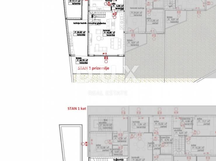Dvoetažni stan S1 se sastoji od tri spavaće sobe, dnevnog boravka s kuhinjom i blagovaonicom, dva kupatila, stubište, velika terasa i dvorište od 100-tinjak m2. Stanu pripadaju dva parkirna mjesta i postoji mogućnost kupnje garaže za dodatnih 30 tisuća eura.