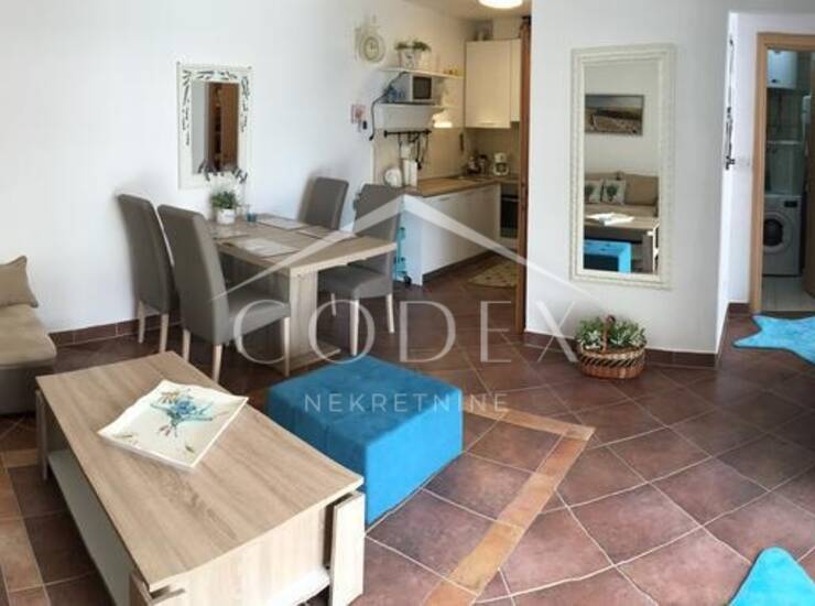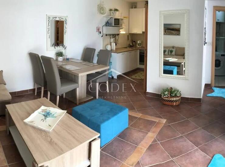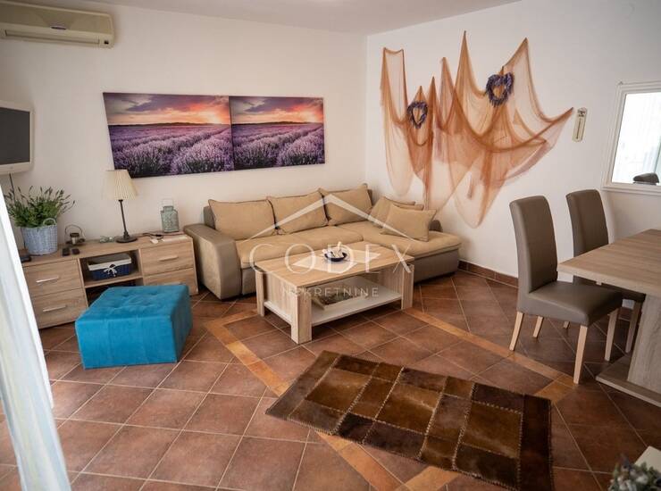 Na prodaju je uredan i funkcionalan apartman smješten u mirnom dijelu Novog Vinodolskog, svega 50 metara od mora i plaže. Apartman ima površinu od 48 m² te mu pripada prostrana terasa od 44 m² koja pruža idealan prostor za opuštanje i boravak na otvorenom. Uz terasu, prema etažnom elaboratu, apartmanu pripada i uređena zelena površina u dvorištu od 29 m².