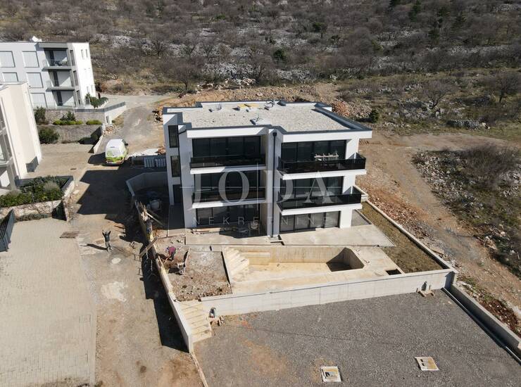 Na prodaju je ekskluzivan trosobni apartman s bazenom i očaravajućim pogledom na Podvelebitski kanal, ukupne stambene površine 90 m², smješten na drugom katu moderne i kvalitetno građene zgrade.