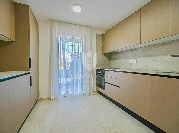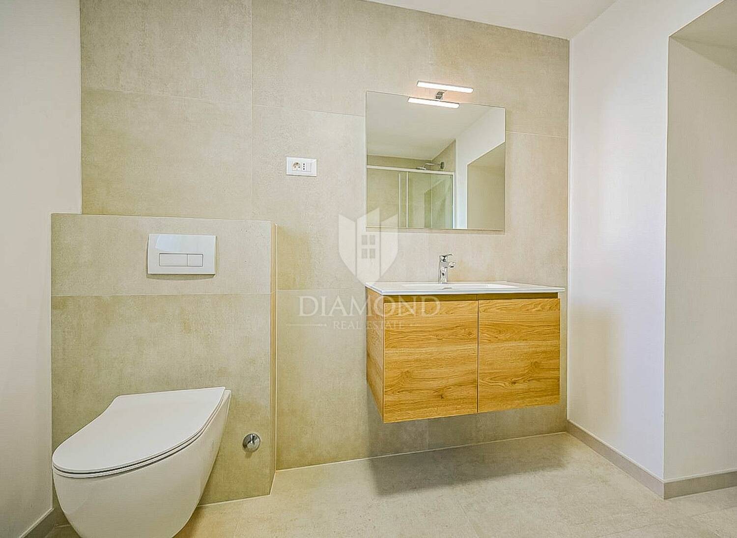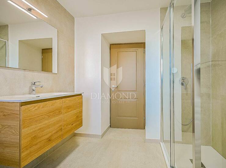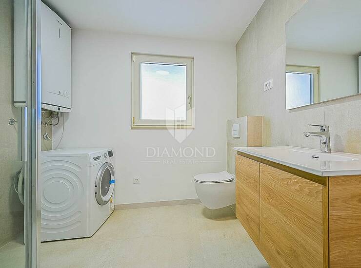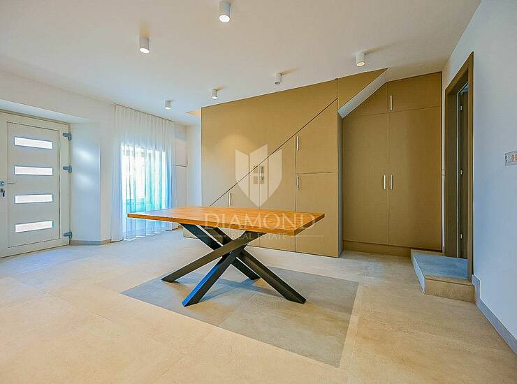 Kuća se prostire na četiri etaže, a svaki kat nosi svoj karakter i funkcionalnost, pažljivo osmišljenu za udoban boravak tijekom cijele godine. Već pri ulasku u prizemlje dočekuje vas ugodan prostor s kuhinjom i blagovaonicom, te moderno uređena kupaonica. Iz kuhinje se izlazi na natkrivenu terasu površine 25 m². U prostoru prizemlja ugrađen je sustav električnog podnog grijanja, što osigurava ravnomjernu raspodjelu topline i optimalnu ugodnost boravka. Terasa je opremljena pomičnom pergolom i ljetnom kuhinjom, s vanjskim tušem i hidromasažnom kadom kapaciteta 5 osoba.