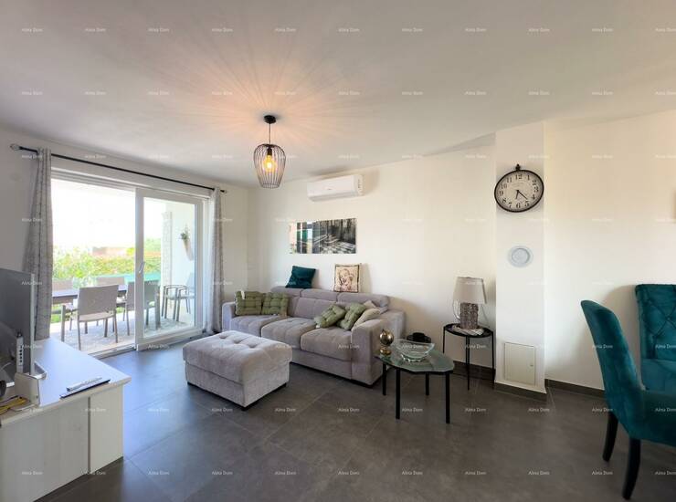U prizemlju se nalazi svijetli dnevni boravak s izlazom na terasu, kuhinja s blagovaonicom, dodatna kupaonica, te 30 m2 atrija s jacuzzijem.