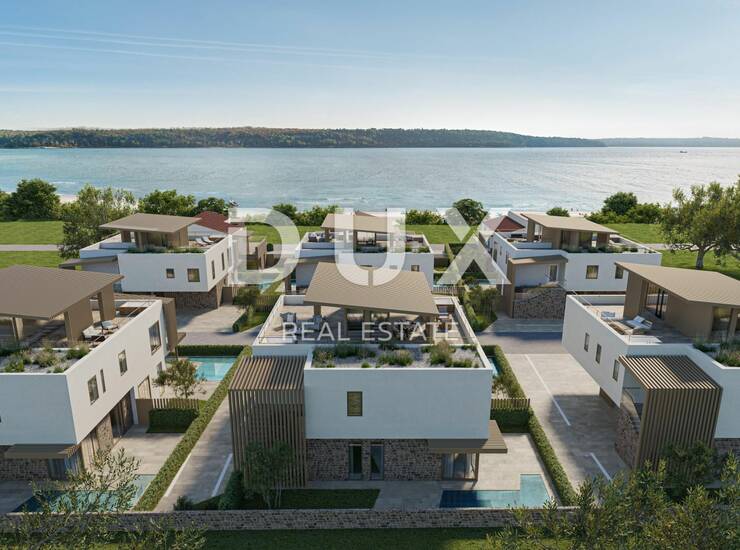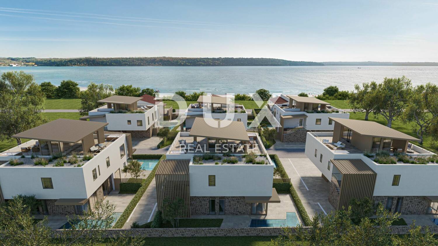 NOVIGRAD - dvojna kuća u novom kompleksu od 9 zgrada sa sveukupno 24 stana i 6 dvojnih kuća, s pogledom 200m od mora!