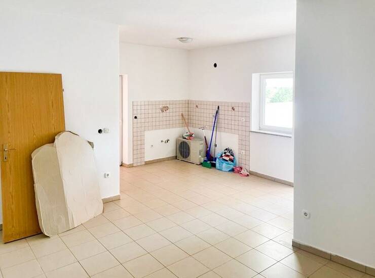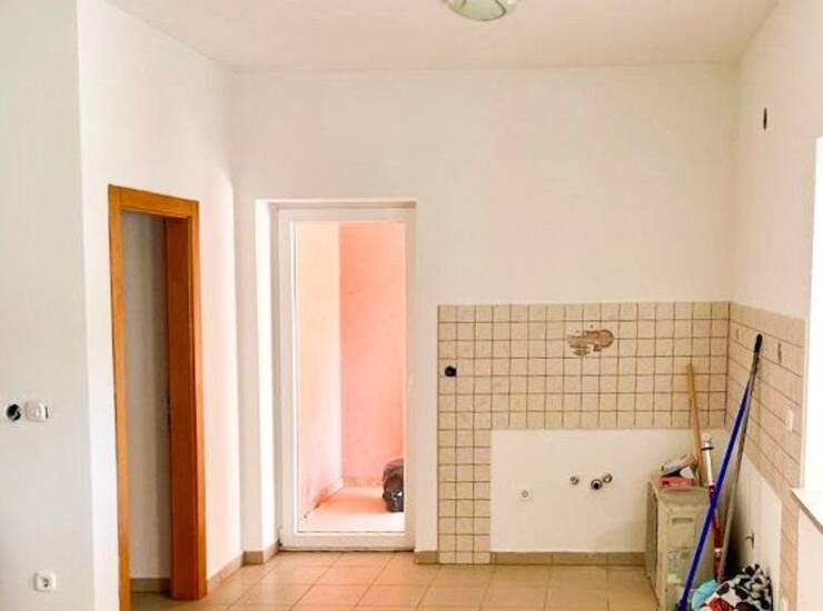 Smješten u prizemlju manje zgrade, ukupne stambene površine 34,63 m2. Sastoji se od dnevnog boravka sa kuhinjom i blagovaonicom, kupaonice, hodnika i terase. Apartman je potrebno opremiti.