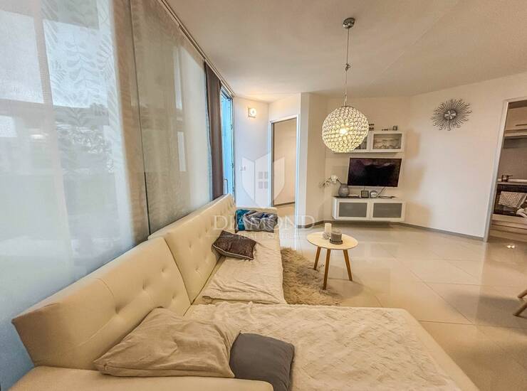 Stan je potpuno opremljen i spreman za useljenje, a u vlasništvu ima i vlastito parkirno mjesto u garaži sa spremištem. U njemu je osigurano ugodno stanovanje tijekom cijele godine zahvaljujući sustavu grijanja i hlađenja putem dvaju klima uređaja te podnim grijanjem kroz cijeli stan.