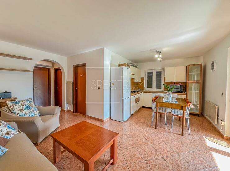 Stan se nalazi na izuzetno atraktivnoj lokaciji udaljenoj svega 350 m od mora i nedaleko od centra. U blizini stana nalaze se šetnice, biciklističke staze, park, igralište, trgovina, škola, vrtić, banka, pošta, autobusni kolodvor, sportska dvorana i razni drugi sadržaji potrebni za život.