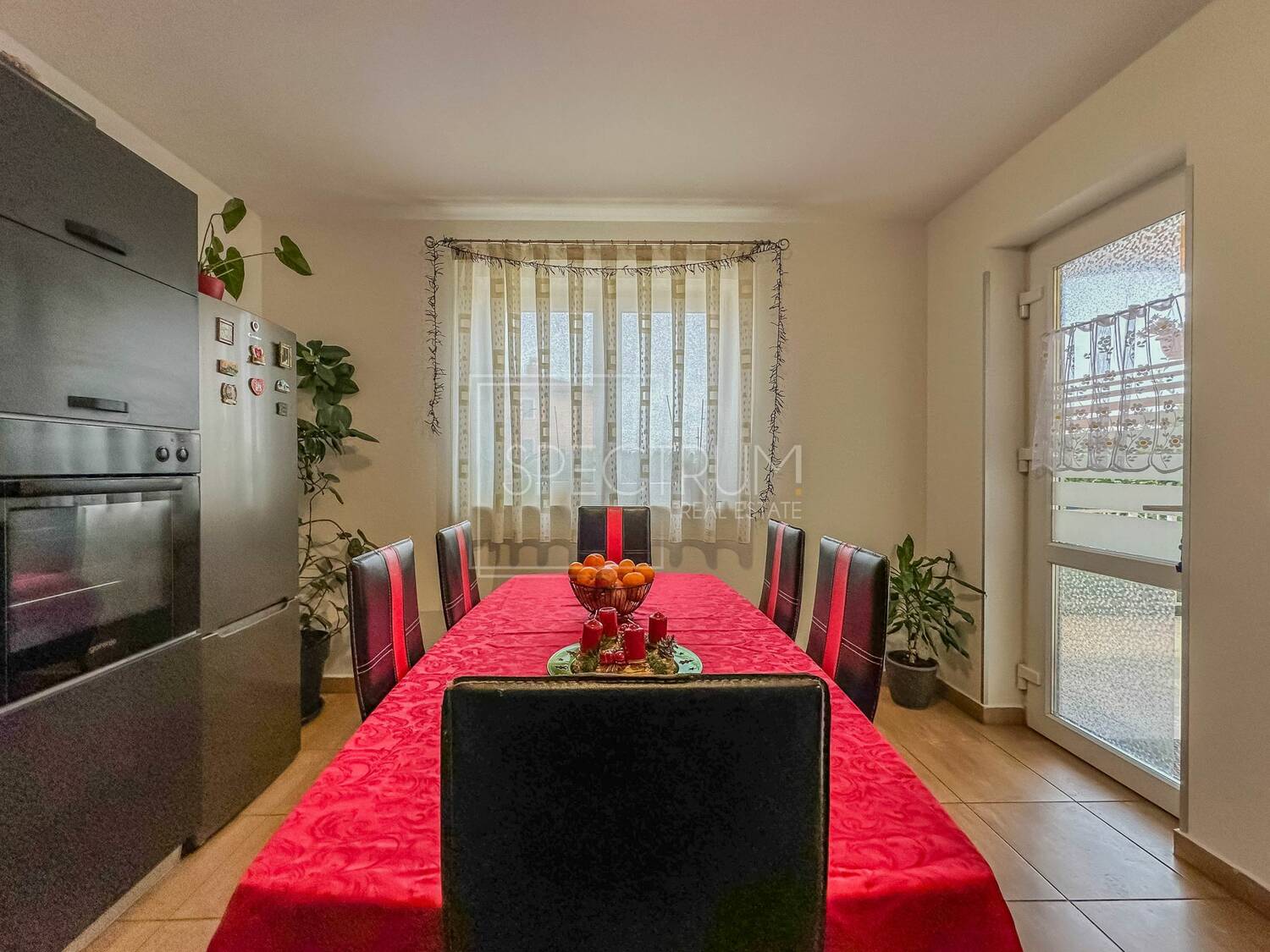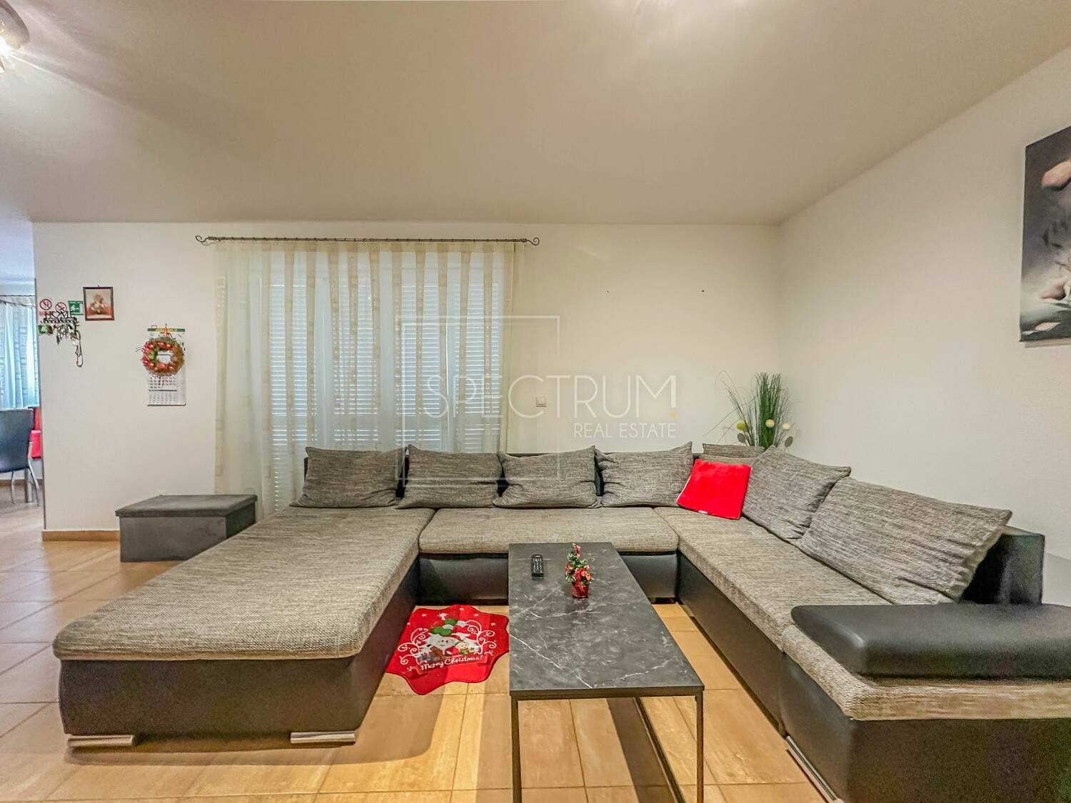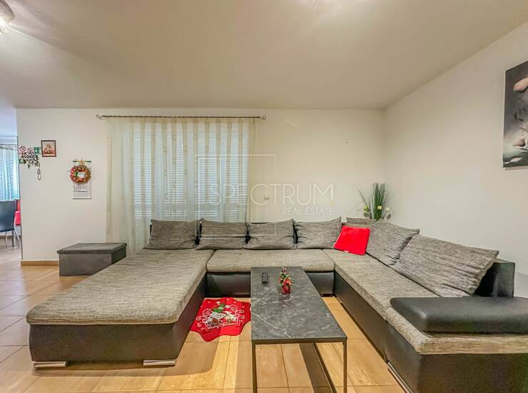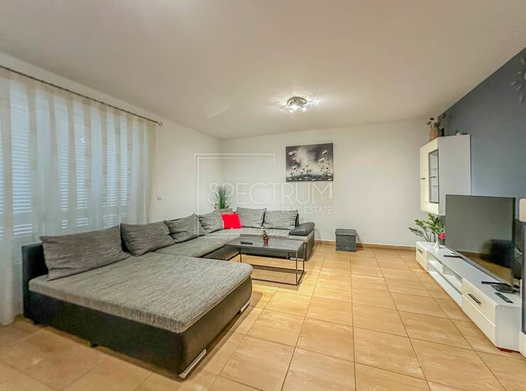 Stan se nalazi u prizemlju stambene zgrade, a površina stana iznosi 89.58 m2. Stan se sastoji od prostranog dnevnog boravka sa kuhinjom i blagovaonicom open space koncepta, 2 spavaće sobe, kupaonice, wc-a, hodnika i 2 natkrivene terase. Na manju natkrivenu terasu se izlazi iz spavaćih soba, a na drugu veću i natkrivenu terasu na kojoj se nalazi i roštilj, dolazi se iz dnevnog boravka i kuhinje. Terasa predstavlja prostor za uživanje i druženje. S obzirom na veću površinu stana i raspored prostorija, stan zaista pruža komfor. Grijanje u stanu regulirano je putem klima uređaja. Stan se prodaje namješten.