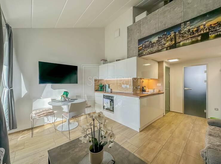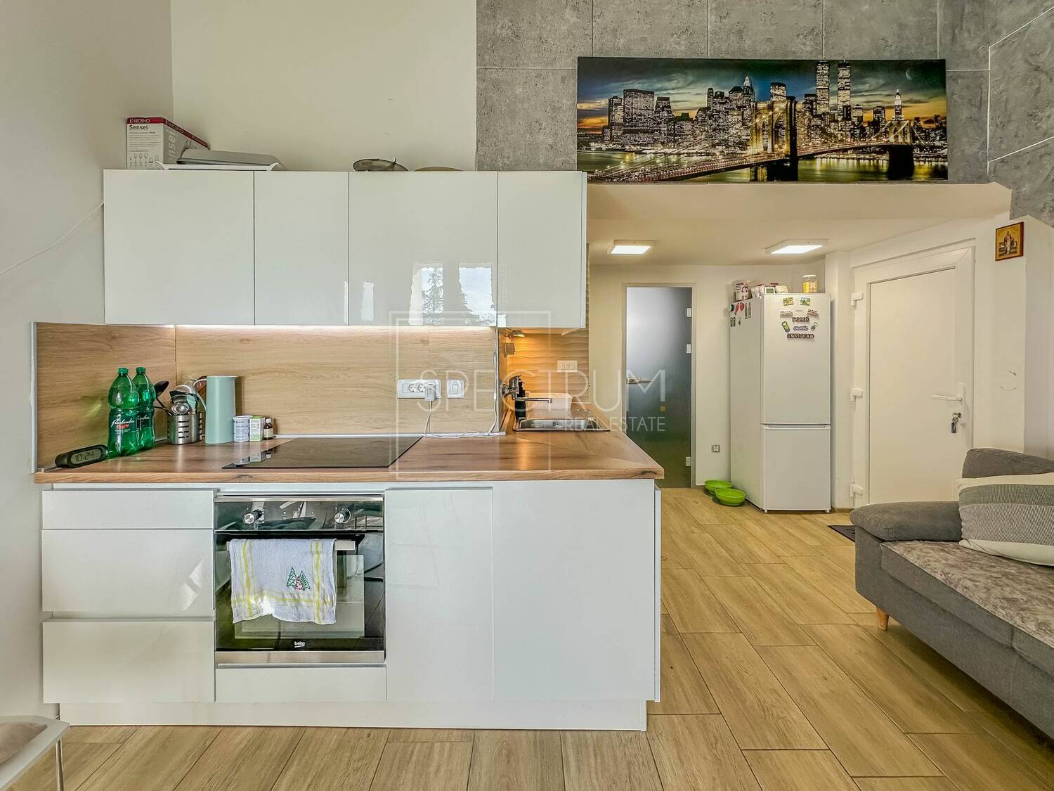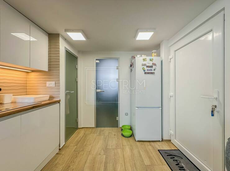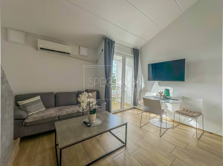 Stan se nalazi u stambenoj zgradi, a proteže se na 3.kat i galeriju. Tlocrtna površina stana iznosi 39.45 m2, dok ukupna površina stana zajedno sa galerijom iznosi 55.45 m2. Na 3.katu se nalazi dnevni boravak sa kuhinjom i blagovaonicom open space koncepta, spavaće sobe, kupaonice i balkona sa kojeg se pruža pogled na zelenilo, a djelomično se vidi i more. Unutarnjim stepenicama se dolazi do galerije gdje se nalazi još jedna spavaća soba. Grijanje je regulirano putem klima uređaja. Stan se prodaje namješten. Stan je 2024.godine renoviran. Parking na korištenje se nalazi odmah pored same zgrade.