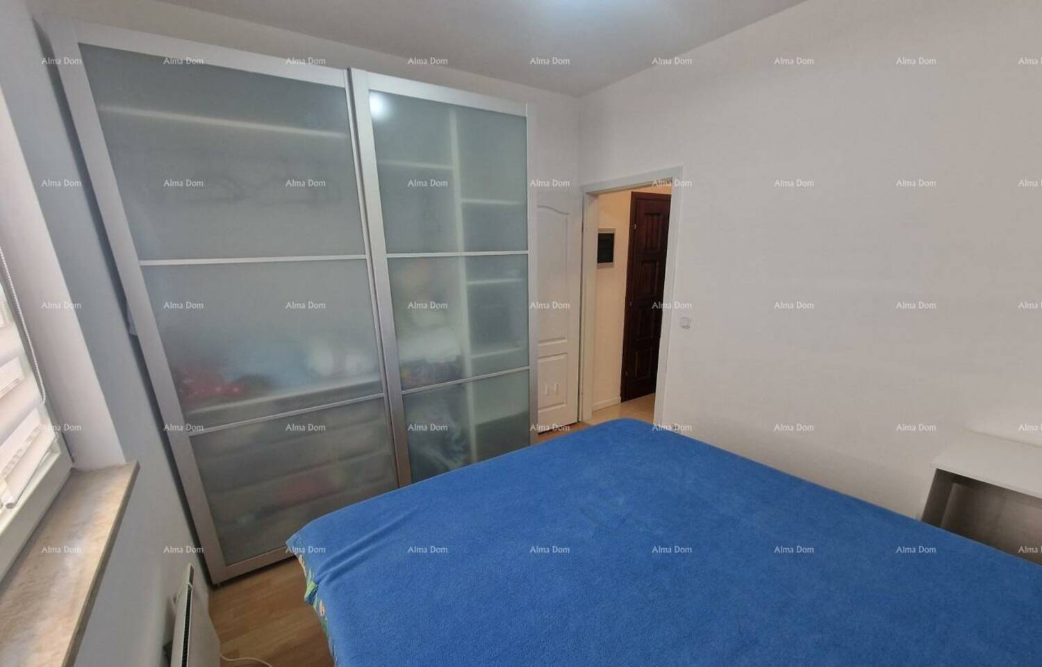 -spavaća soba s velikim bračnim krevetom s prostorom za odlaganje, veliki ormar s dvostrukim kliznim vratima, radni stol