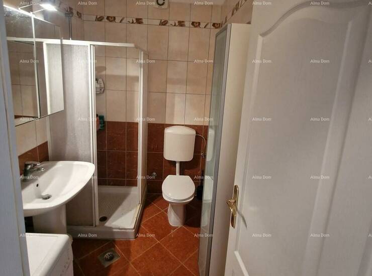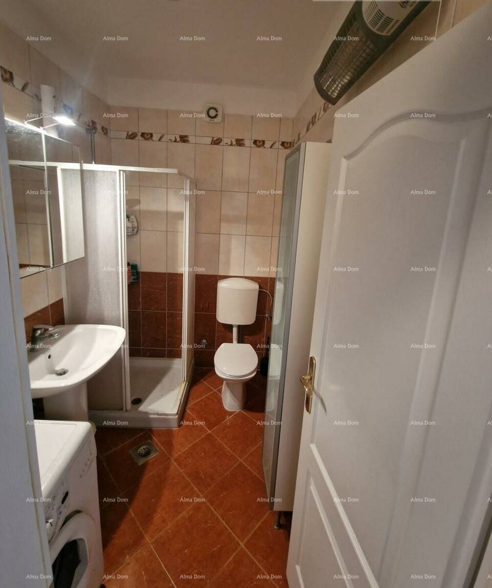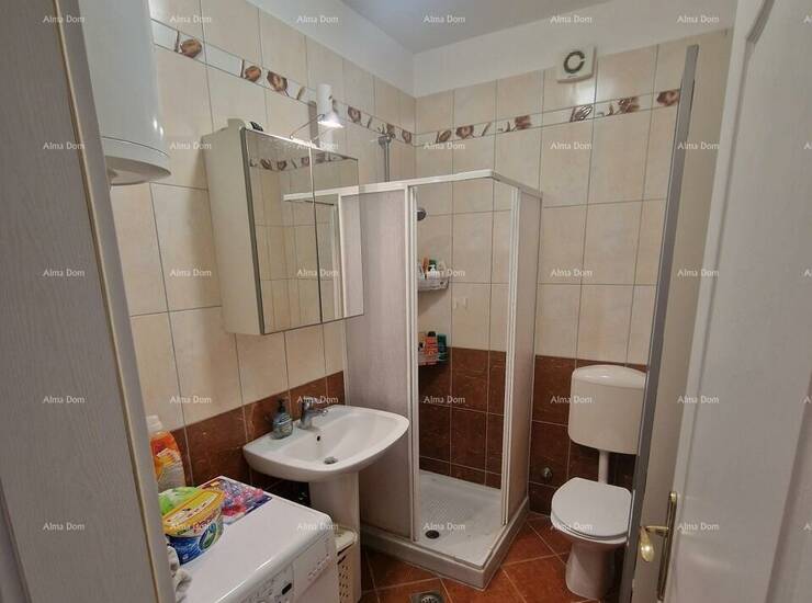 -wc kupaonica s tuš kabinom, umivaonik sa zidnim kozmetičkim ormarićem i ogledalom, perilica rublja, bojler za toplu vodu i veliki ormar