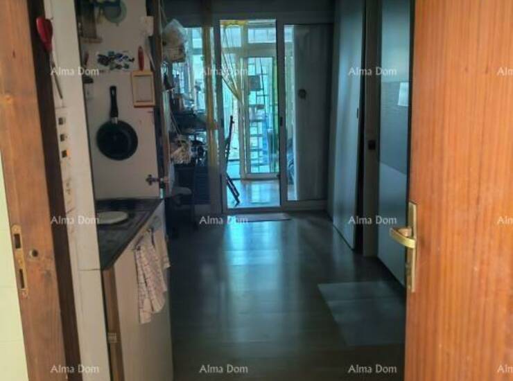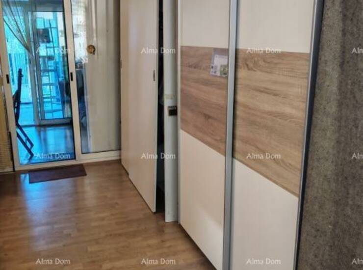 Stan se sastoji od ulaznog hodnika s velikim ugrađenim ormarima, koji služe kao ostava, dnevnog boravka, dvije manje prostorije za spavanje i loggia-e od 14m2.