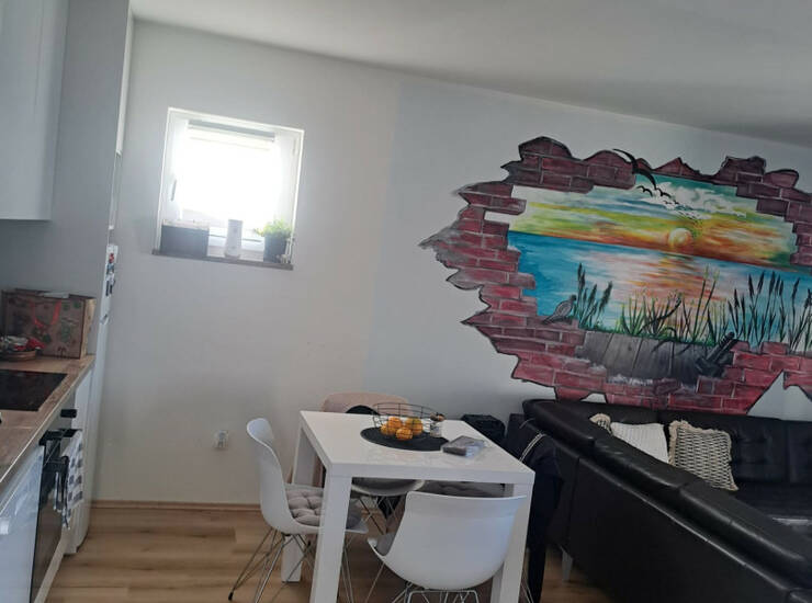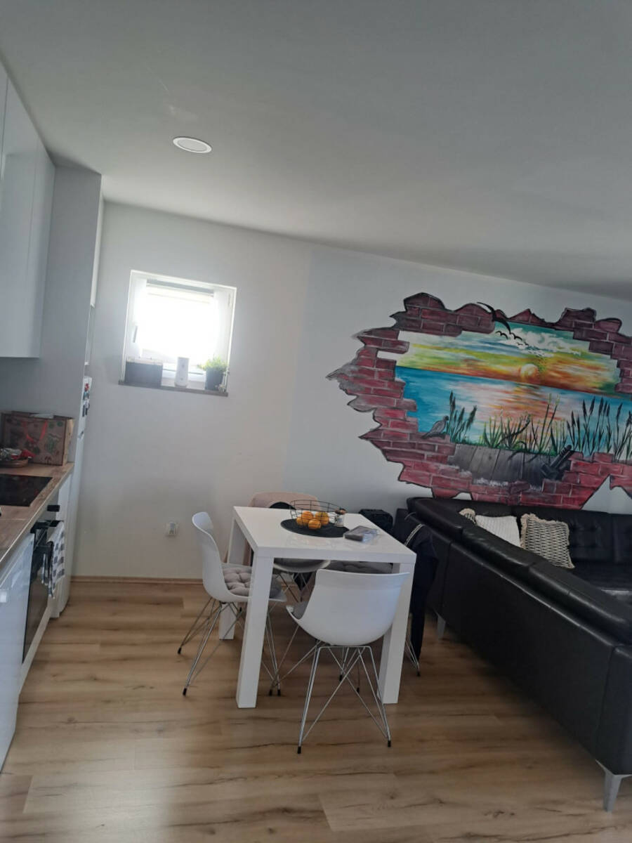 Zadar, Vrulje, - posredujemo u prodaji prekrasnog stana koji se nalazi 1.red od mora, i na 1.katu poslovno-stambene zgrade, potpuno uređen. Sastoji se od jedne spavaće sobe sa izlazom na balkon., open space kuhinje i dnevnog boravka, kupaonice sa wc i tuš kabinom, i hodnikom. Ukupna netto površina stana je 59m2. Balkon 15,5m2. Stan je pogodan za život i bavljenje turizmom.Stan se prodaje namješten. Etažirano.