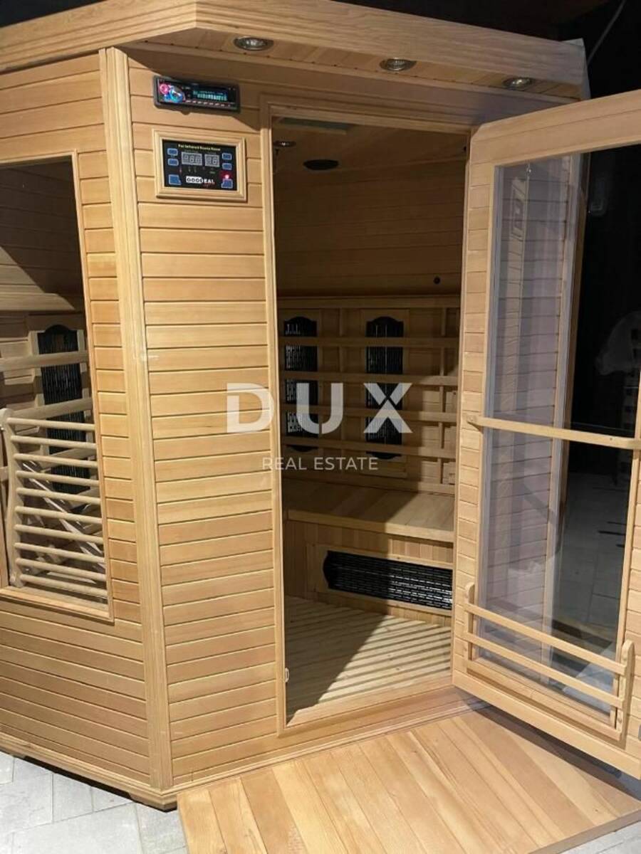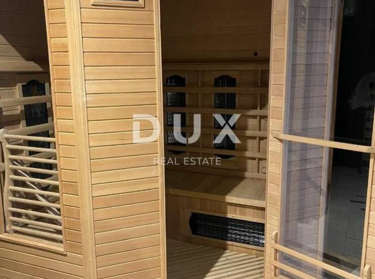 - Kat: Prostrani dnevni boravak povezan s moderno opremljenom kuhinjom i blagovaonicom, jedna udobna spavaća soba s vlastitom kupaonicom, te luksuzni wellness prostor sa saunom i hidromasažnom kadom. Iz dnevnog dijela izlazi se na natkrivenu terasu površine 35 m², idealnu za uživanje u prirodi.