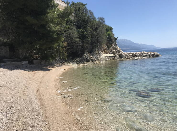 Ispred nekretnine se nalazi kaskadni teren koji vodi direktno do plaže i koji je u građevnoj zoni preko 85% svoje površine. S obzirom na spomenuto kupac može srušiti postojeći objekt te pripremiti novi projekt za gradnju moderne i luksuzne vile što bi s obzirom na položaj zemljišta u prostoru moglo predstavljati optimalno ulaganje u ovaj dio obale, te budući novi vlasnik ima na raspolaganju fenomenalne uvjete za privatnost, odmor i uživanje.