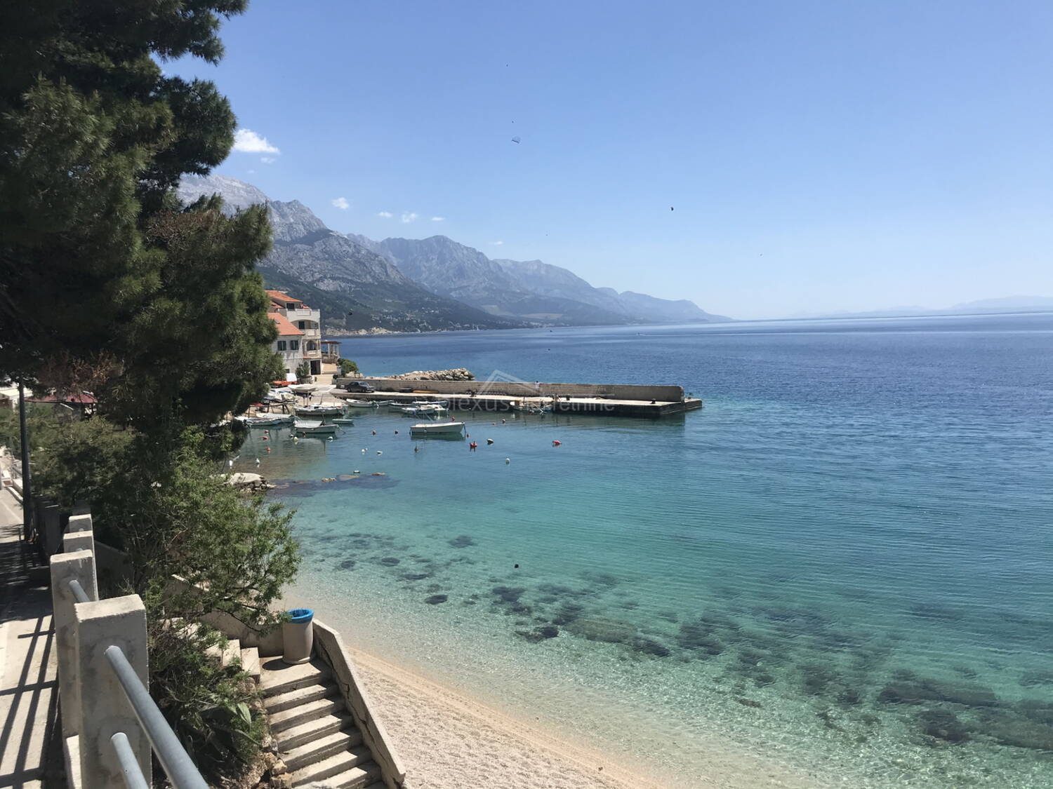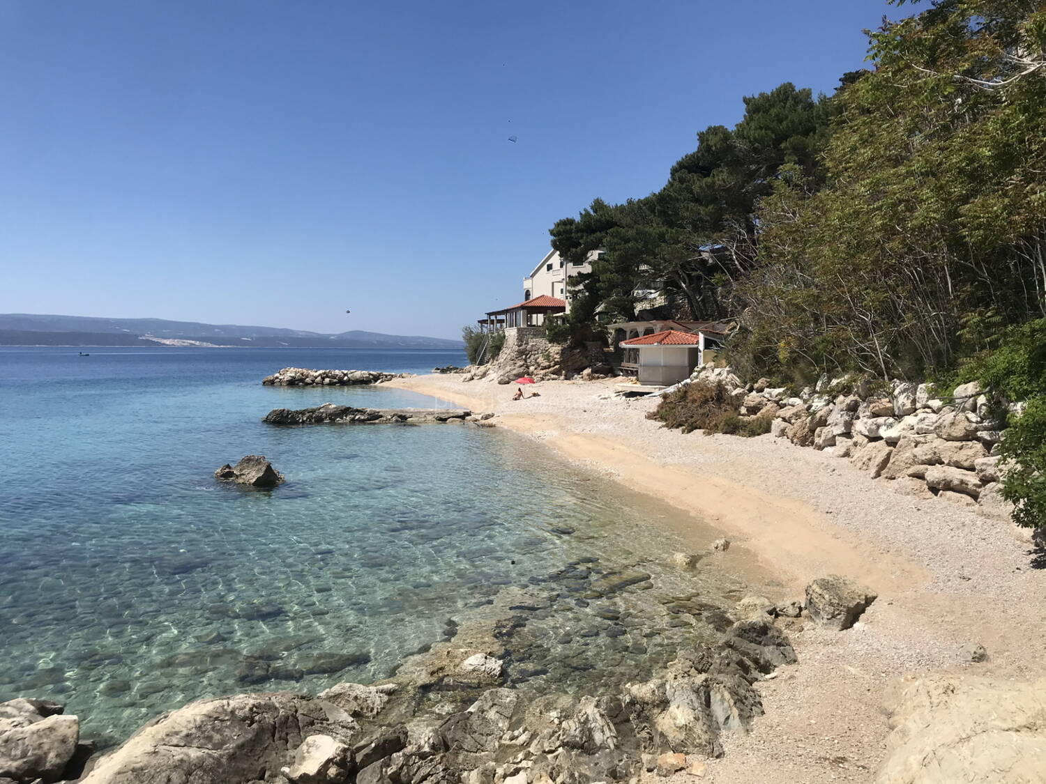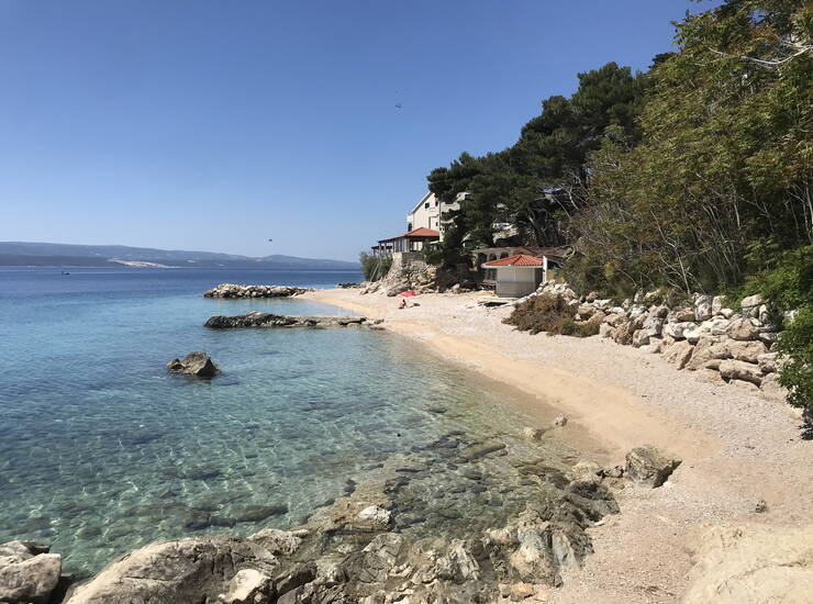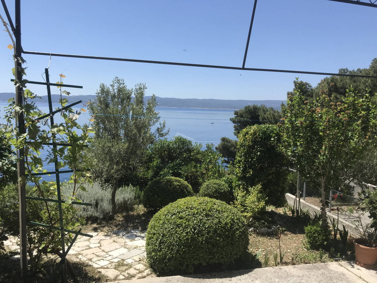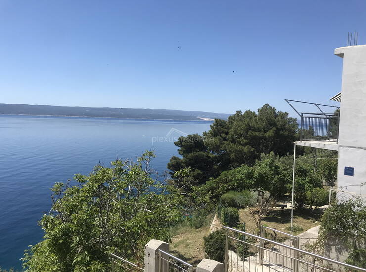 Kuća prvi red do mora u mirnom i ugodnom okruženju smještena u malom turističkom mjestu na Omiškoj rivijeri sa prekrasnim pogledom na more i otok Brač. Okružena je kultiviranim mediteranskim raslinjem. Zemljište se pruža sve do obalnog pojasa tako da nitko ne može ugroziti pogled na predivno morsko plavetnilo.