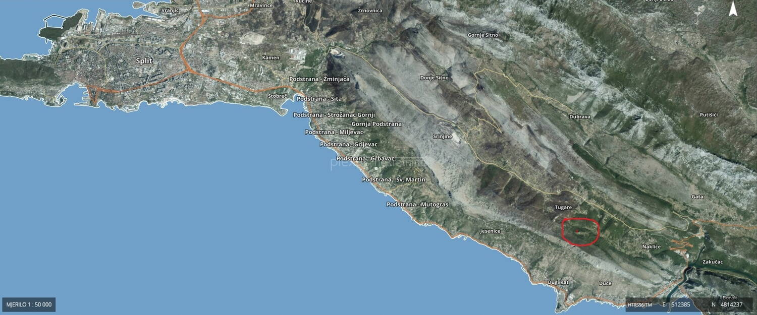 Zemljište:SNIŽENO! Split - okolica (18 km), Tugare, Truše, 1580 m2
