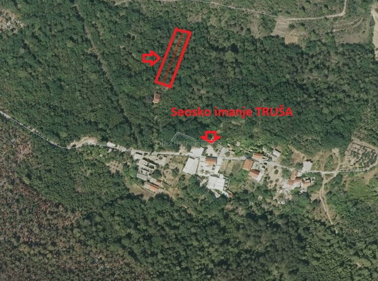 Pristup automobilima je moguć makadamskom cestom. Površine zemljišta je 1580 m2, a cijena je snižena sa 44000 € (28 € po m2) na 33000 (21€po m2). Teren je obrastao