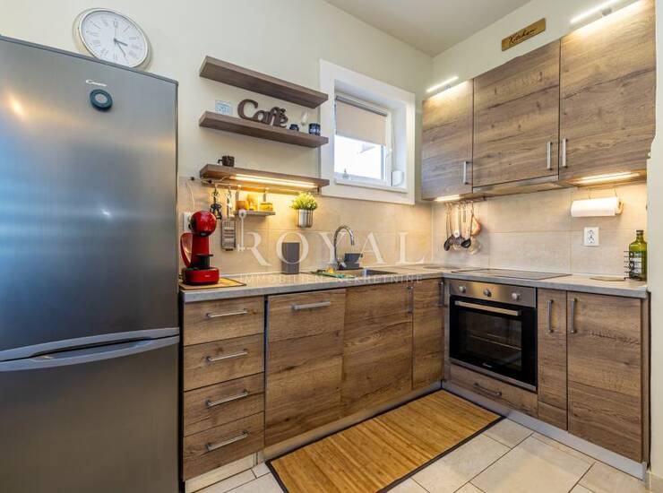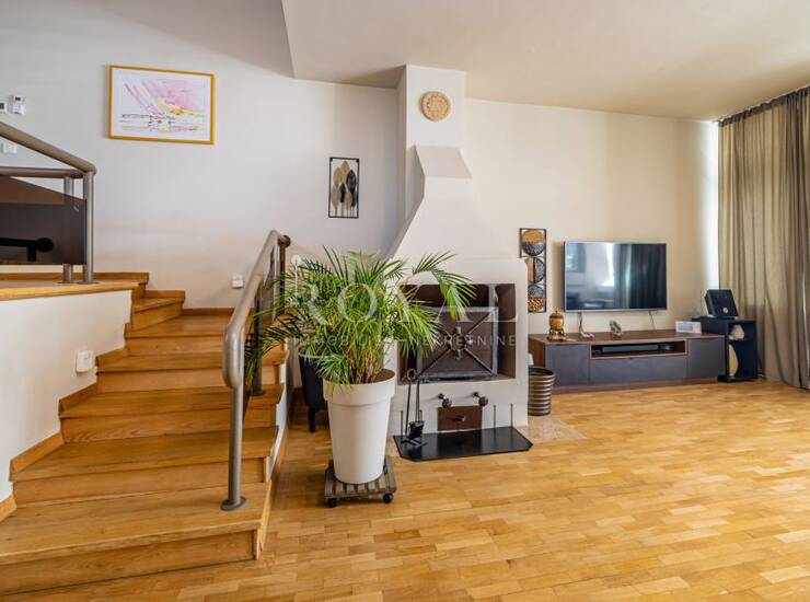Iz gotovo svake prostorije pruža se otvoren pogled na kvarnerski zaljev, dok prostrane terase i balkoni pozivaju na opuštanje u nezaboravnim zalascima sunca. Kuća je opremljena centralnim grijanjem, a vanjska toplinska izolacija čini je ugodnom u ljetnim i zimskim mjesecima.