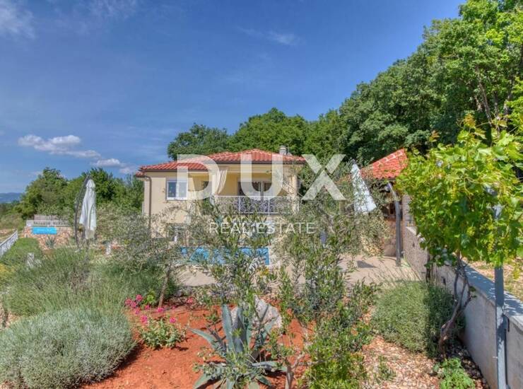 Kuća za odmor na mirnoj poziciji, sastoji se od 2 etaže i proteže se na ukupnoj površini 260 m2. Kuća se sastoji od dva odvojena stana, od čega se jedan nalazi u prizemlju, a jedan stan na katu. Svaki stan ima dnevni boravak, kuhinju, dvije spavaće sobe. kupaonicu i terasu. Na uređenoj okućnici se nalazi bazenom, ljetna kuhinja s roštiljem i parking za više automobila. Pripada joj i garaža za jedan automobil te prostorija u funkciji spremišta (moguća prenamjena).