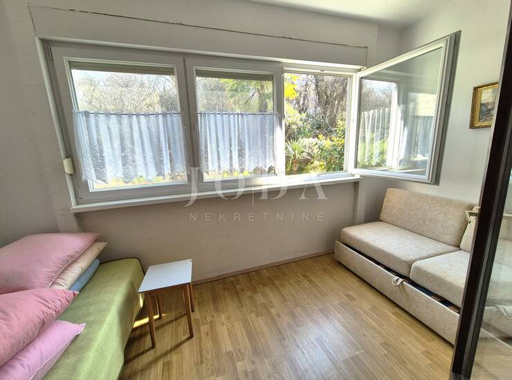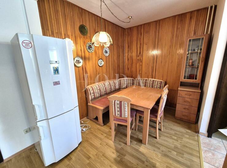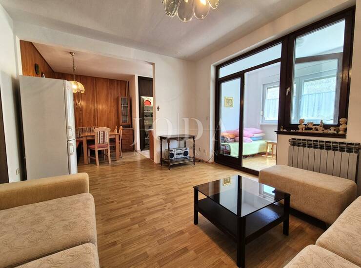 Apartman se nalazi na visokom prizemlju stambene zgrade i sastoji se ulaznog hodnika, dnevnog boravka s blagovaonom, kuhinje s ostavom, kupaonice, spavaće sobe i loggie. Renovirane su podne obloge i kupaonica. Apartman se prodaje namješten i spreman za korištenje. Parking je moguć na javnoj površini.