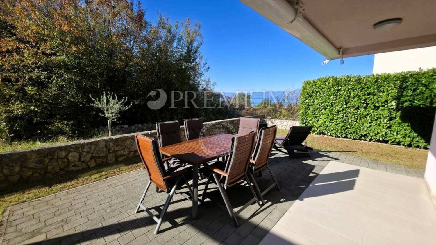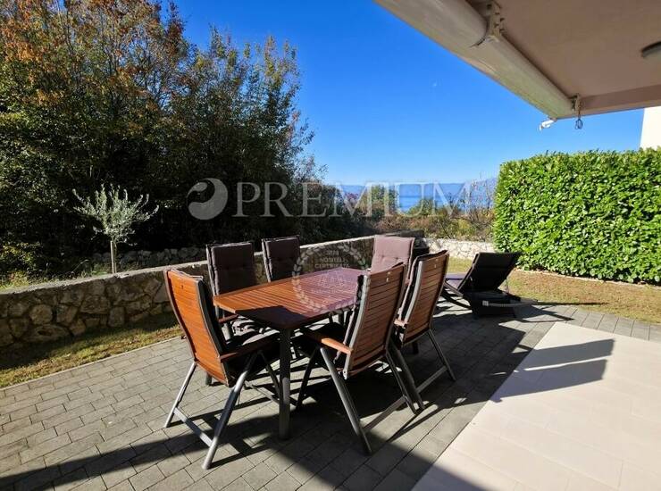 Njivice, prodaja apartmana u prizemlju s velikom okućnicom i pogledom na more.