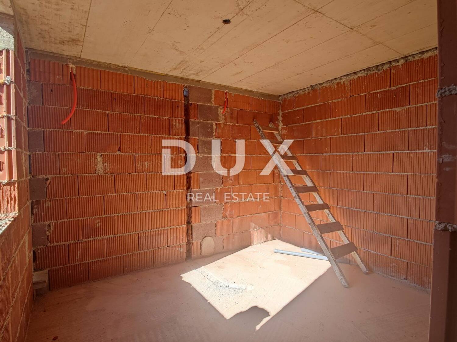 Ovaj lijepi apartman smjestio se na lijepoj lokaciji, na oko 500 metara od mora. Ima oko 60 m2 i nalazi se u novogradnji na drugom katu. Sastoji se od kupaonice, dvije spavaće sobe, kuhinje s blagovaonicom i dnevnim boravkom iz kojih se kroz staklenu stijenu izlazi na veliki balkon s lijepim pogledom na more. Pripadaju mu dva parkirna mjesta koja se nalaze na okućnici objekta. Apartman ima podno grijanje, a hlađenje je riješeno putem klima uređaja. U objekt su ugrađeni visoko kvalitetni materijali, a planirani završetak izgradnje je sredina 2024. godine.