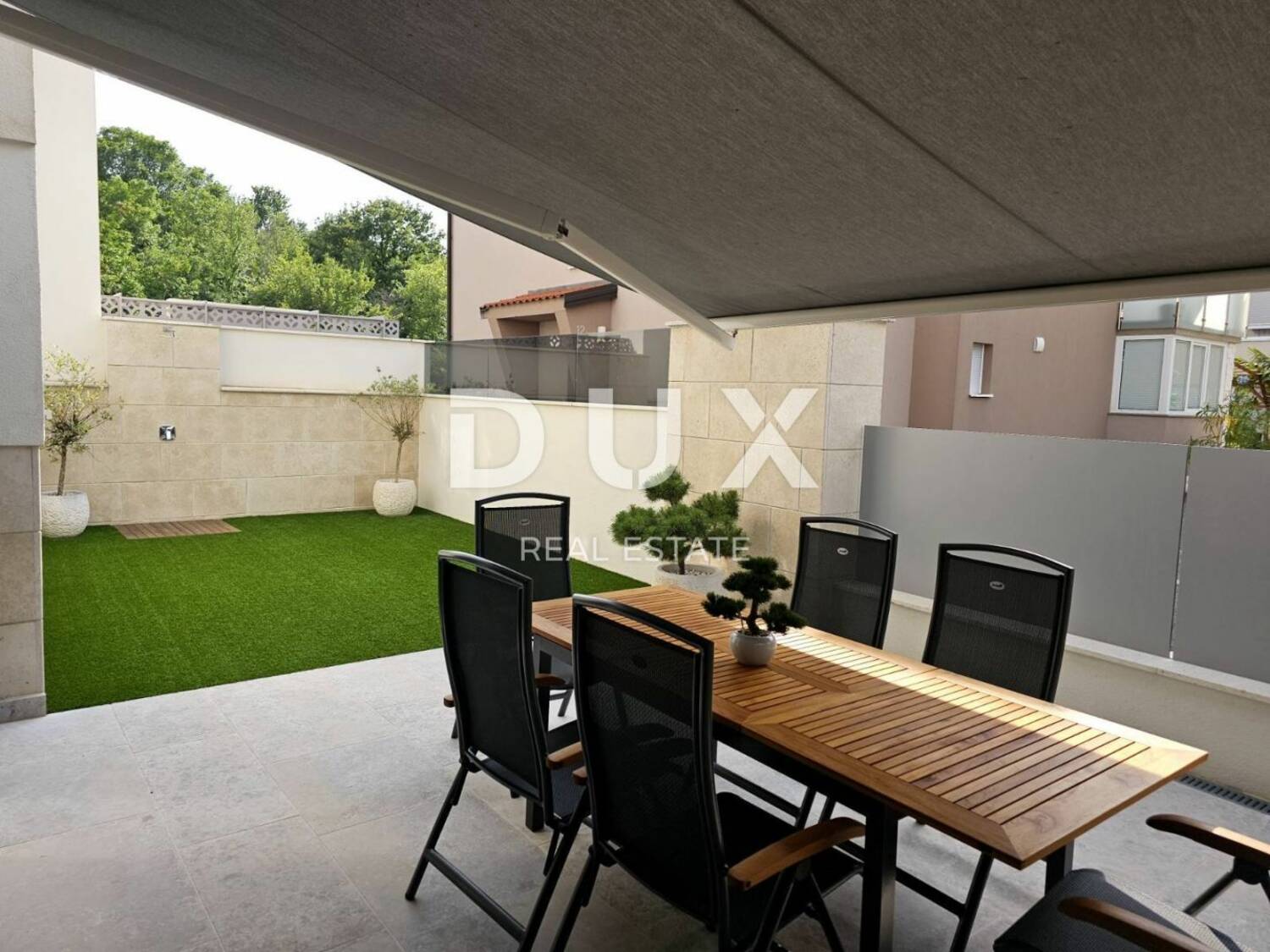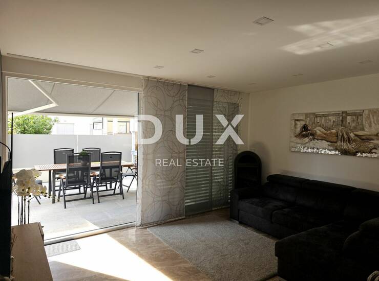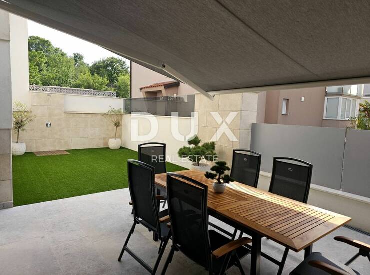 S ukupnom površinom od 72m², prostor se sastoji od dvije prostrane spavaće sobe, dnevnog boravka, kuhinje s blagovaonicom, kupaonice, hodnika te praktične ostave. No, pravi dragulj ovog apartmana je predivna terasa s pripadajućom okućnicom, prostorom od čak 55m2, pružajući savršeno okruženje za opuštanje ili druženje s obitelji i prijateljima.
