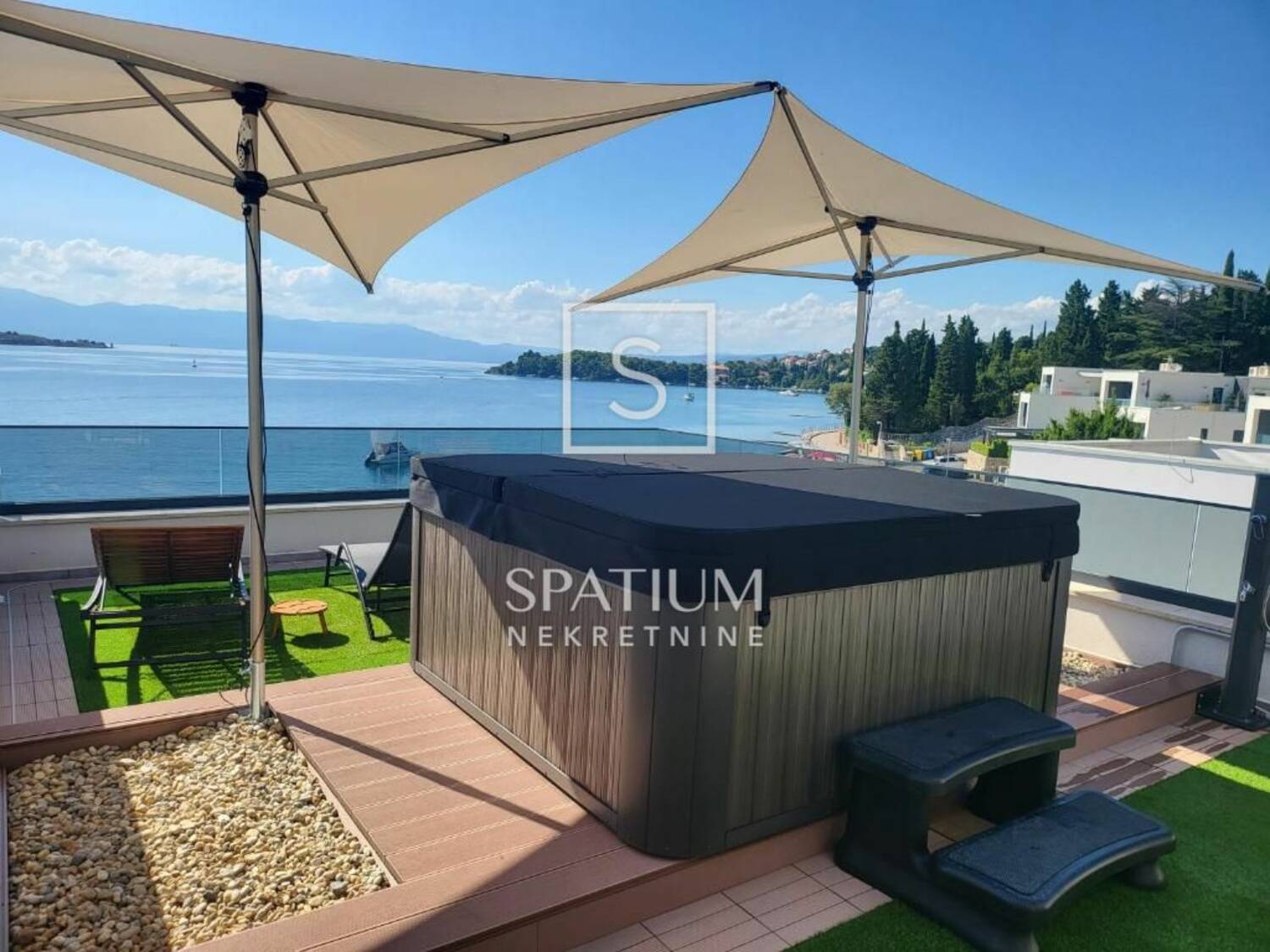 Vanjskim stubištem dolazi se na krovnu terasu od cca 80 m2, na kojoj se nalazi hidromasažna kada, sauna, ležaljke i natkrivena tenda za prostor za druženje.