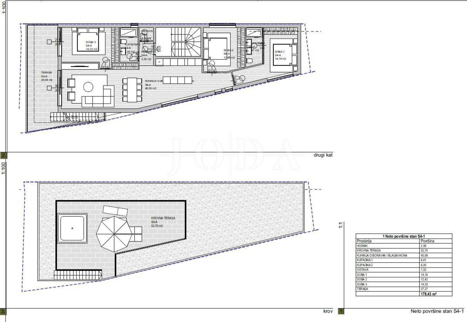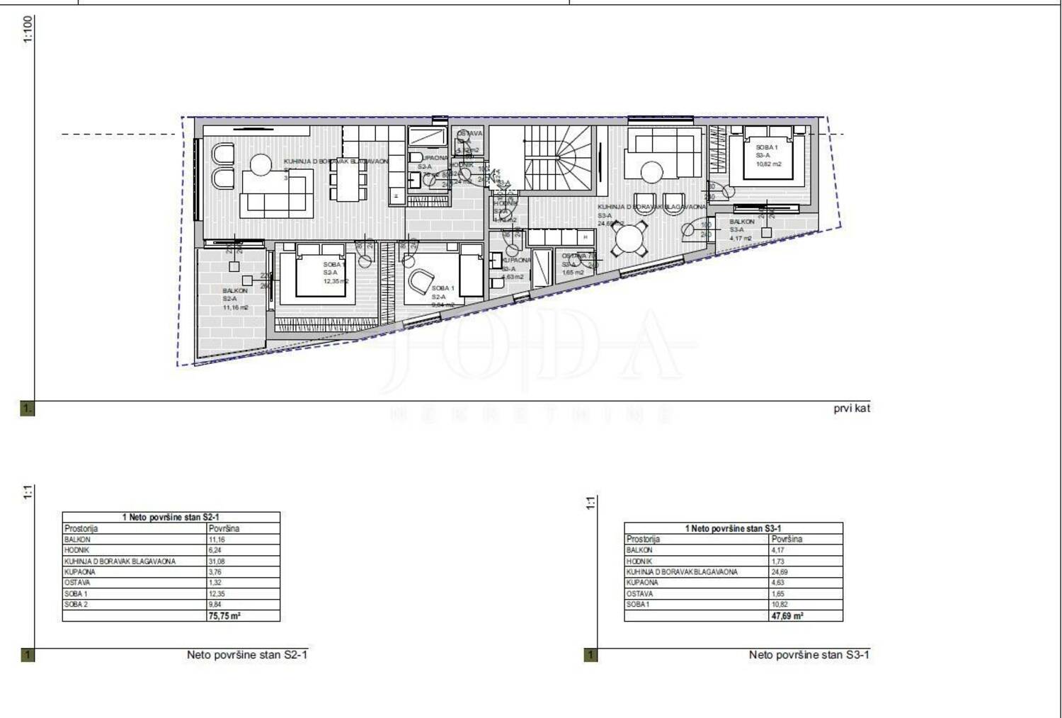 Zemljište se prodaje s kompletnom projektnom dokumentacijom za izgradnju stambene građevine sa četiri stambene jedinice, katnosti prizemlje i dva kata, sa krovnom terasom. Predana je dokumentacija za građevinsku dozvolu. Infrastruktura (struja, voda, internet) - na 20 m od terena.