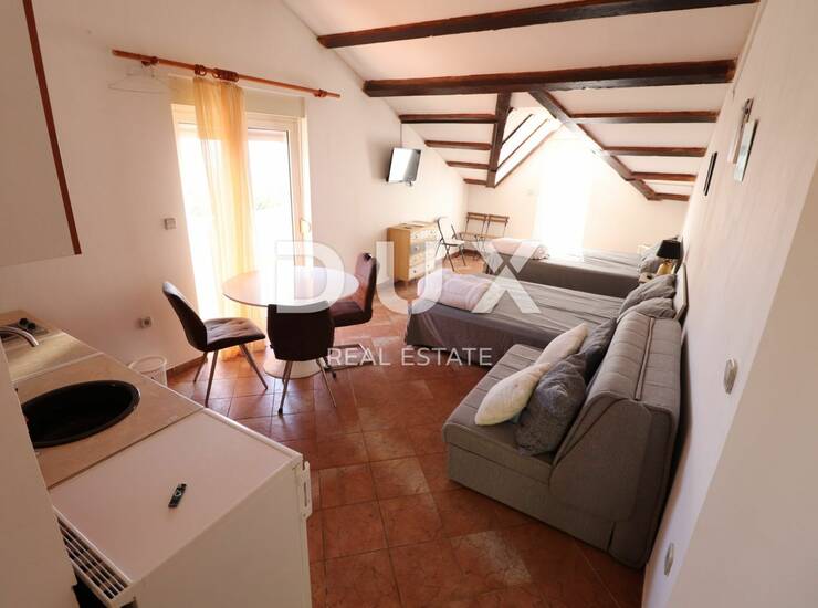 U prodaji smo dobili vilu u blizini mora. Kuća se sastoji od 6 apartmana sa već uhodanim poslom. Odlična prilika za investiciju. U prizemlju se nalazi 2S+DB, dva dvoetažna stana (2SKL prizemlje-1. kat i 2S+DB 1. kat-2. kat) i tri studio apartmana na 1. i 2. katu. Svaki apartman ima svoje kupatilo. Svaki apartman ima pogled more ili djelo