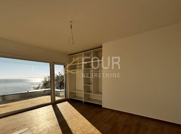 Na katu su tri elegantne spavaće sobe, svaka s vlastitom kupaonicom, a s južne strane pruža se veliki balkon s prekrasnim panoramskim pogledom na more i Kvarnerske otoke.