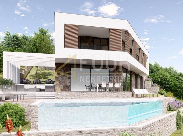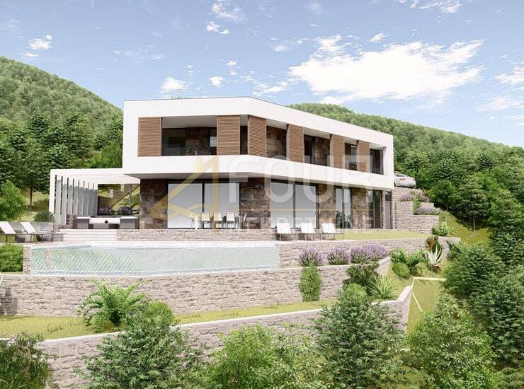 Prodaje se moderna vila u izgradnji u Ičićima nedaleko Opatije, s panoramskim pogledom na more i Kvarnerski zaljev. Ova elegantna novogradnja planiranog završetka do kraja 2025. godine prostire se na dvije etaže i ukupno 280 m2 stambene površine, a nalazi se na okućnici od 1.000 m2 s uređenim okolišem, garažom i više parkirnih mjesta.
