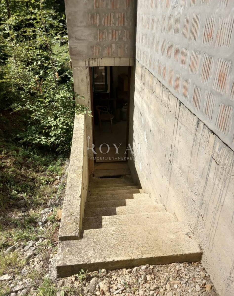 Na atraktivnoj i mirnoj lokaciji u Veprincu, u blizini Opatije, prodaje se useljiva kuća s prostranim terenom, idealna za obiteljski život ili kao investicija za turistički najam.