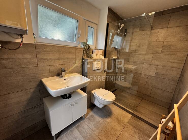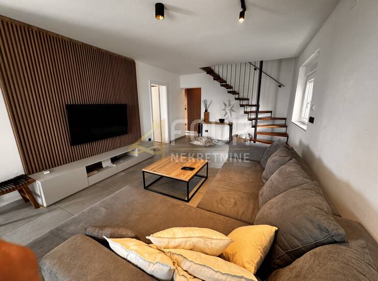 Unutrašnjost kuće osmišljena je s naglaskom na komfor i funkcionalnost – četiri spavaće sobe, četiri kupaonice, dva toaleta, dnevni boravak povezan s kuhinjom i blagovaonicom, a u suterenu se nalazi dodatni prostor za relaksaciju. Nekretnina je prošla temeljitu adaptaciju 2015. godine, dok su krov i fasada obnovljeni 2022., a 2023. godine ugrađeni su solarni paneli snage 10 kWh. Energetski razred A+ osiguran je zahvaljujući vrhunskoj izolaciji od kamene vune i dodatnoj solarnoj izolaciji na krovu.