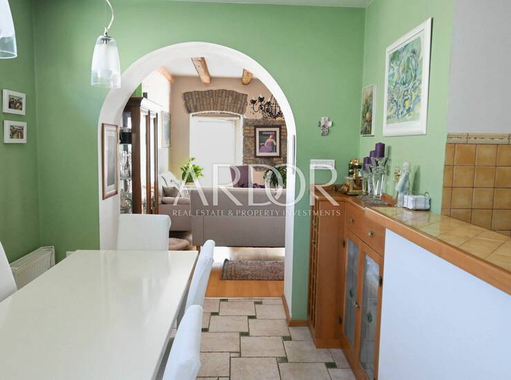 Kuća se prostire na tri etaže i organizirana je kao više stambenih jedinica. U suterenu se nalaze dva apartmana, u prizemlju je smješten prostrani stan, dok je cijela etaža na drugom katu uređena kao četvrta stambena jedinica. Ovakav raspored pruža veliku fleksibilnost te je idealan za obiteljski život, turistički najam ili kombinaciju stanovanja i iznajmljivanja.