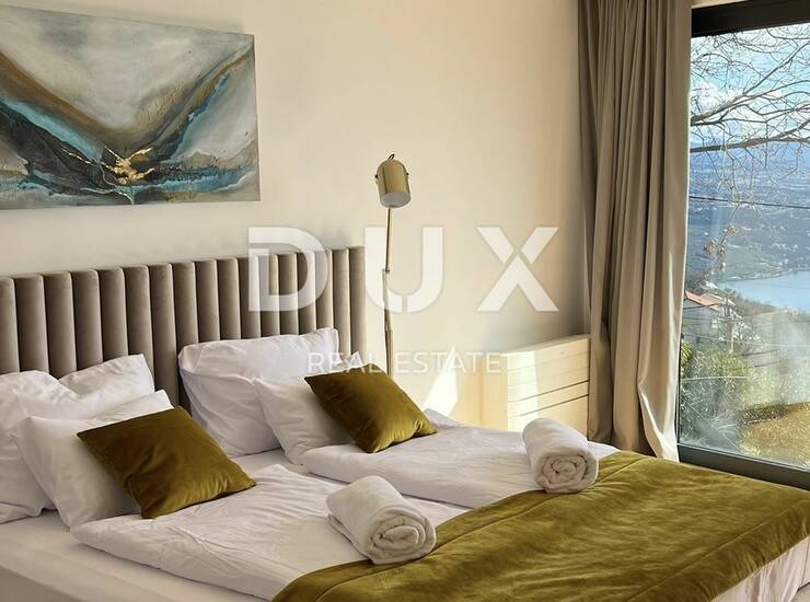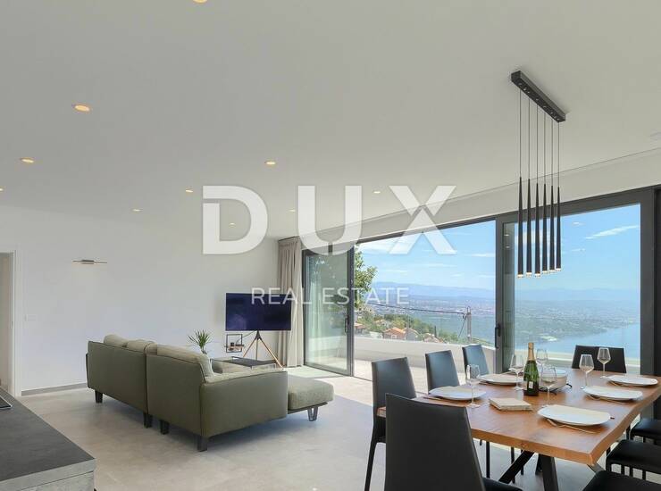 Ekskluzivna villa s panoramskim pogledom na cijeli Kvarnerski zaljev nalazi se na atraktivnoj lokaciji u blizini Opatije korisne stambene površine 255 m2.