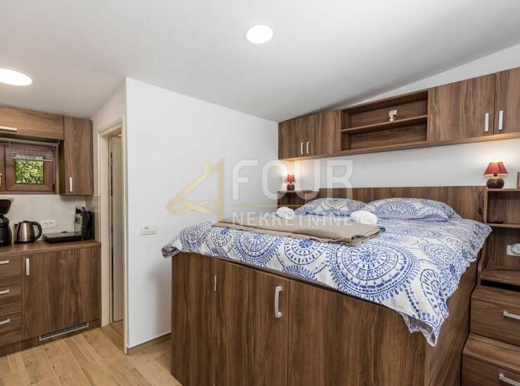 Kućica je koncipirana kao garsonijera, a svaki dio maksimalno je iskorišten.