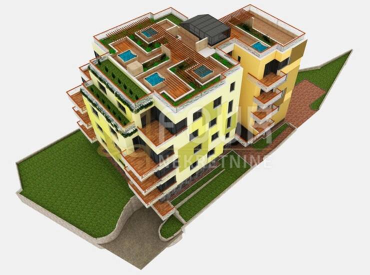 Zgrada ima okućnicu 580m2 te svaki stan u prizemlju ima dio okućnice u vlasništvu, dok stanovi na zadnjem katu imaju krovne terase s kojih se pruža panoramski pogled na more.