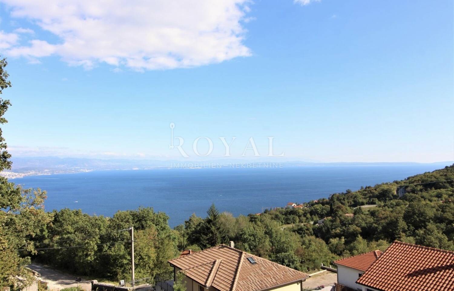 Nekretnina se nalazi u prirodnom okruženju s otvorenim, panoramskim pogledom na more i cijeli Kvarner.