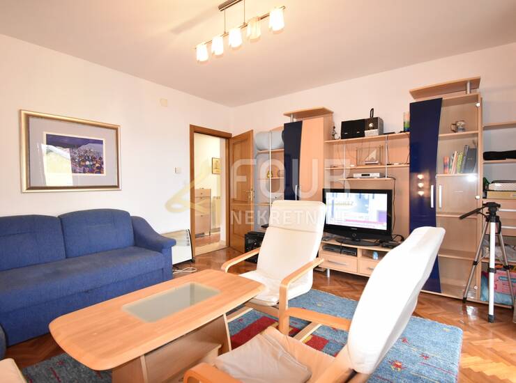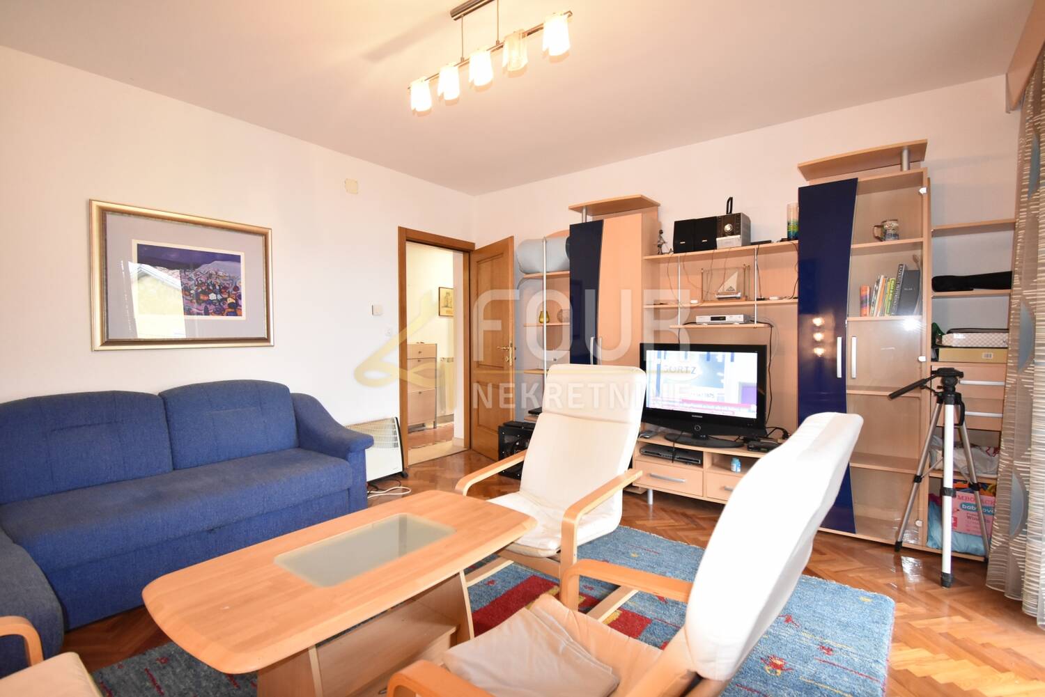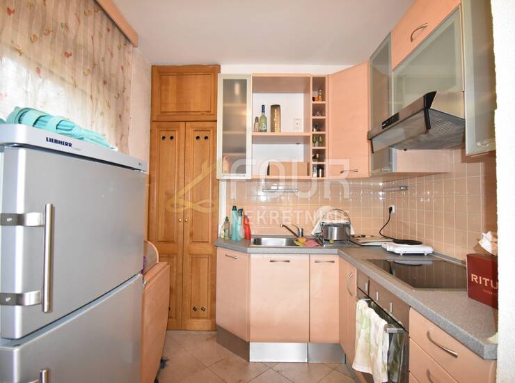 Na prvom katu nalazi se stan s jednom spavaćom sobom, dnevnim boravkom, kuhinjom s blagovaonicom, kupaonicom, WC-om, balkonom i prostranom lođom, dok prizemlje čini roh-bau stan s rasporedom sličnim gornjem katu, garažom i spremištem. Polunatkrivena terasa smještena je iznad garaže, a nova kuhinja za prizemlje uključena je u cijenu.