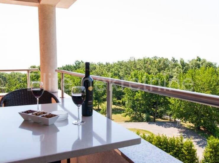 Na prizemlju se nalazi studio apartman te jedan dvosobni apartman sa dnevnim boravkom. Oba apartmana imaju balkon i pogled na more. Na prvom katu se nalaze 2 apartmana, također sa balkonom koji nudi pogled na more. Na ostale 2 etaže se nalaze 4 apartmana.