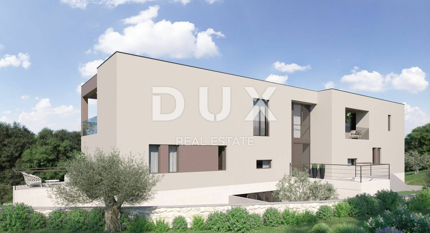 OPATIJA, LOVRAN, OPRIĆ- započeta gradnja s 3 stana i garažom, panoramskim pogledom na more + okoliš 1200m2